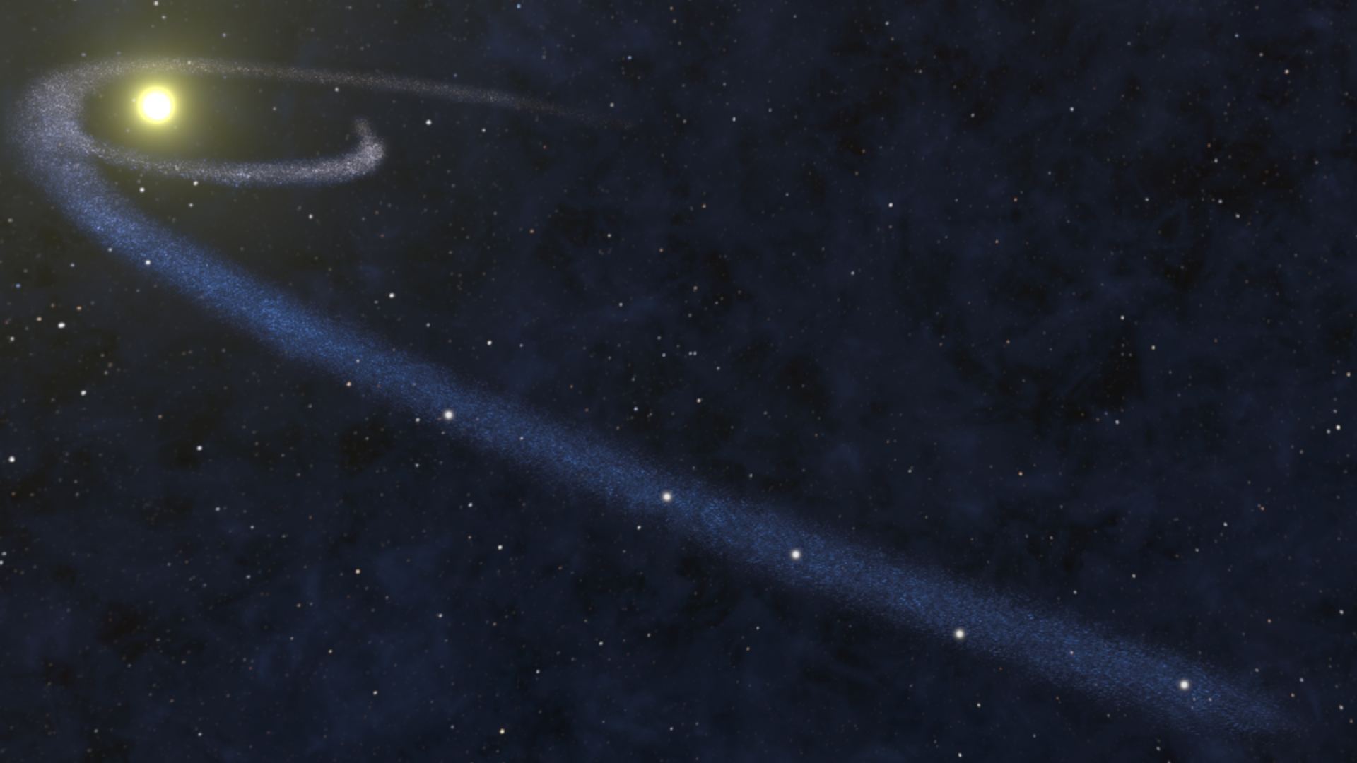Cold streams of gas, possibly stretched out by a passing star. Photo credit: Mark Myers, OzGrav / Swinburne University.