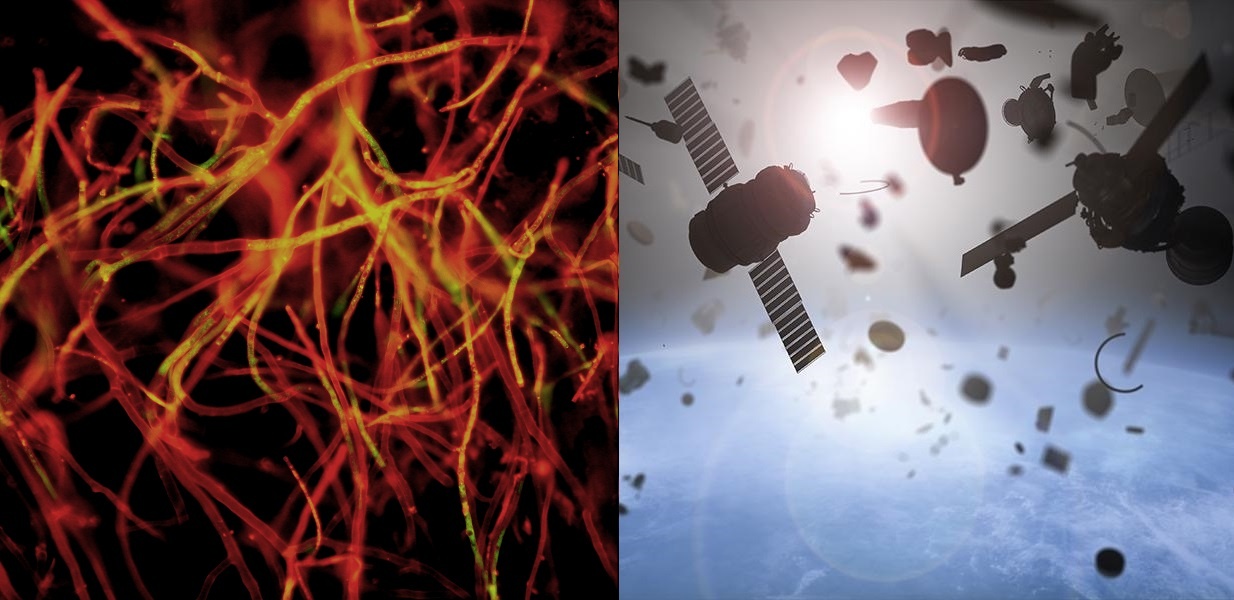 However, this overlooks another danger, namely the way satellites re-entering our atmosphere leave traces of aluminum particles and other toxic residues behind. These particles float in the upper atmosphere for many years and could be another source of environmental problems. Max Justice believes the mycelial fungus could address both of these dangers in the manufacture of satellite enclosures.