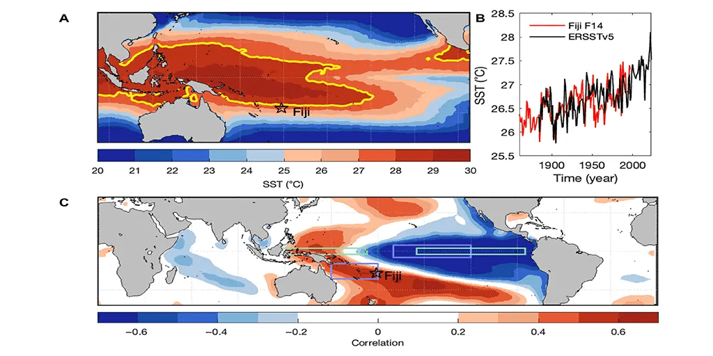 An international team of climate scientists has used 627-year-old coral records from Fiji to gain unprecedented insights into ocean temperatures and climate variability across the Pacific since 1370.