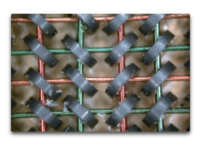 It had a memory composed of small ring-shaped magnets with wires running through them, like the photo below. The computer energized a combination of the wires to “flip” the magnetic state of each of the small rings. This allowed each small ring to represent a binary 1 or a 0.