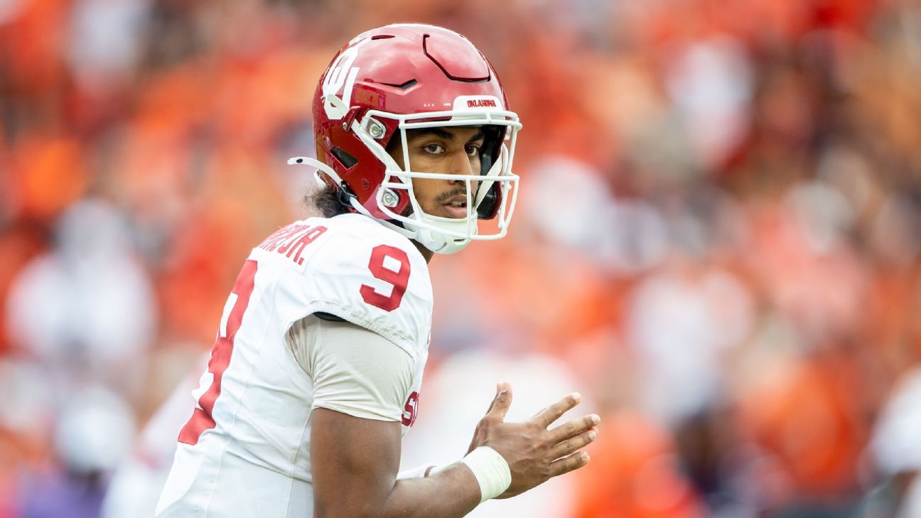 Hawkins‘ Gelassenheit sowie seine Neigung, sich in und über gegnerische Verteidiger zu stürzen, haben einen kurzen, aber glänzenden Start ins Leben als Quarterback von Oklahoma geprägt. Beim Cotton Bowl am Samstag, 38 Meilen von dem High-School-Feld entfernt, auf dem Jordan zum ersten Mal mit Hawkins zusammenarbeitete, wird der Neuling der Sooners Red River Rivalry-Geschichte gegen die Nr. 1 Texas schreiben.