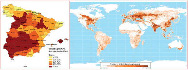 Figure 3: Global and Spanish Cropland Coverage, Fractional Cropland Area.