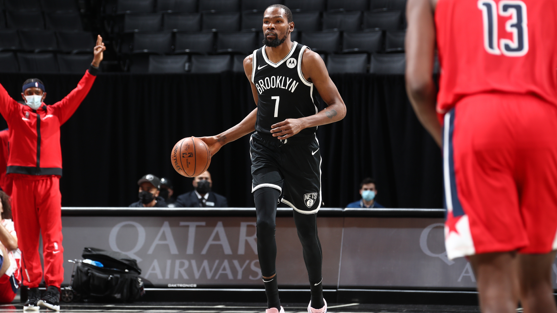 Durant missed the entire 2019-20 disrupted campaign due to a broken Achilles, averaging 28.2 points, 7.0 rebounds and 4.8 assists for the nets this season.